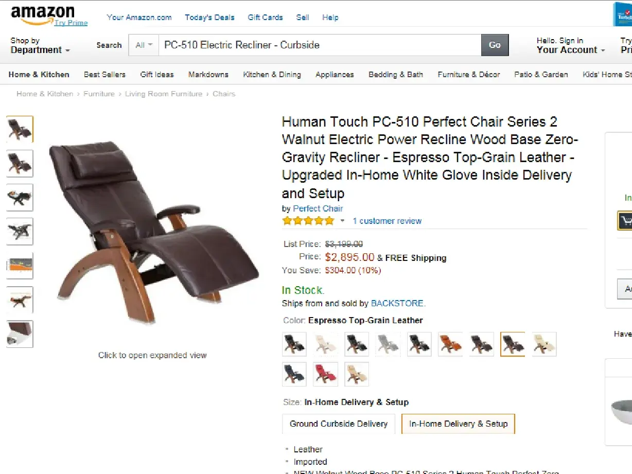 Human Touch PC-510 Perfect Chair Series 2 Walnut Electric Power Recliner: