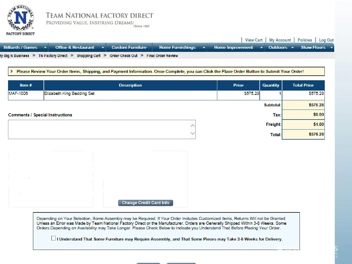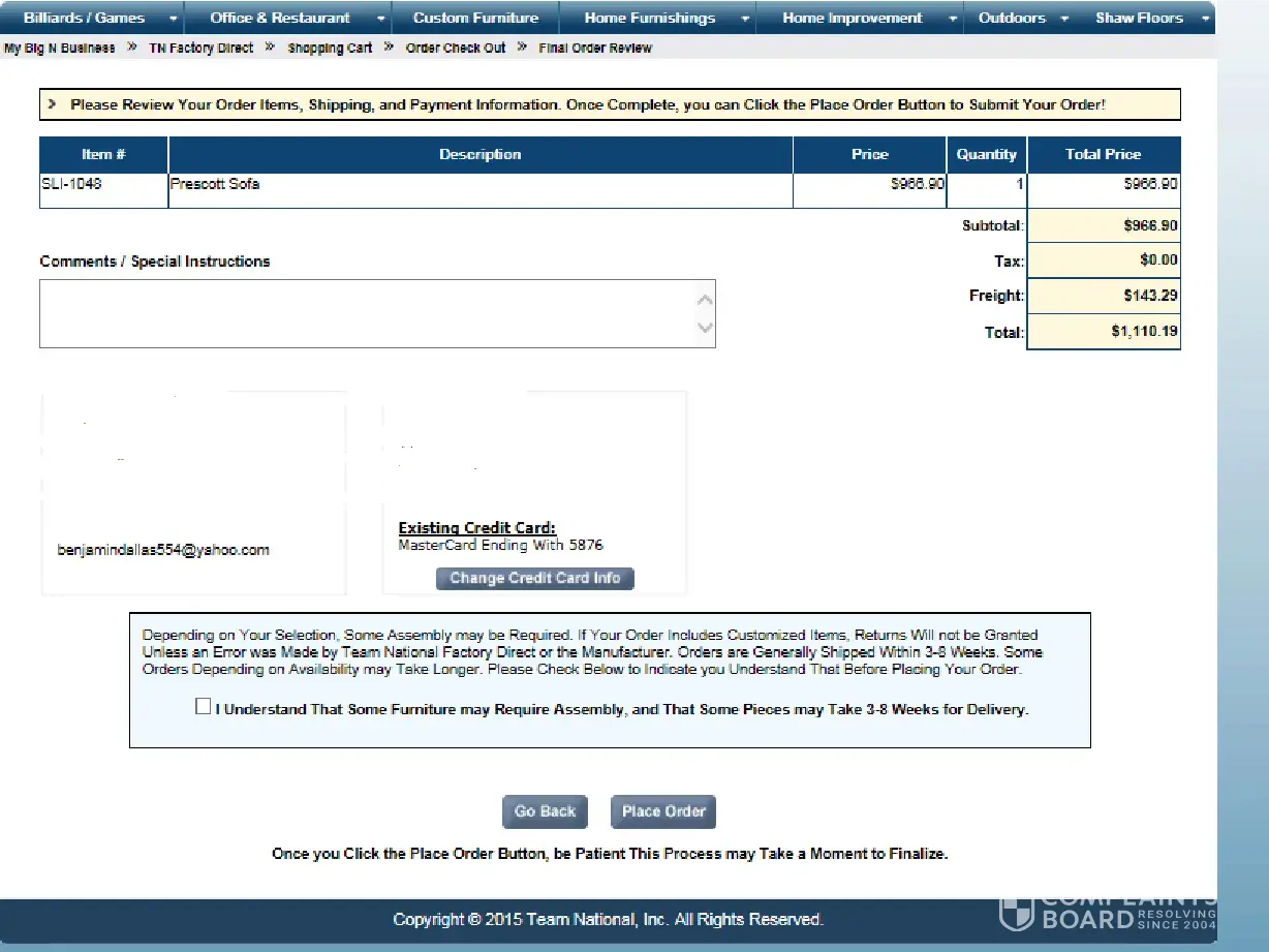 So then after not answering his pyramid scheme rhetoric he starts making more accusations. In a recent retort he stated that Team National supporters never give specific examples of the saving's. So after several attempts (with "complaintsboard.com" not posting many of them) I finally got through with 3 specific examples of Team National saving's! Those three random examples that I presented couldn't be found cheaper anywhere... So Rodney then tried to find them cheaper and couldn't even come close... However he was so desperate to bash this Company that he "claimed" to find (2 of my 3) examples at cheaper prices from amazon.com... He didn't say he could find a cheaper price on my bed example because he simply couldn't find anything remotely close or similar in price so he brushed it off as “discontinued furniture” even though it can easily be found (at multiple different outlets) using a basic google search...