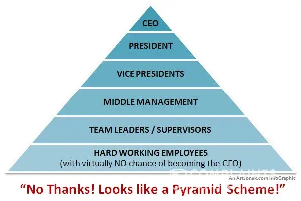"Its not a pyramid scheme. Yes it is. Do you recruit members that you then benefit from their activity?"