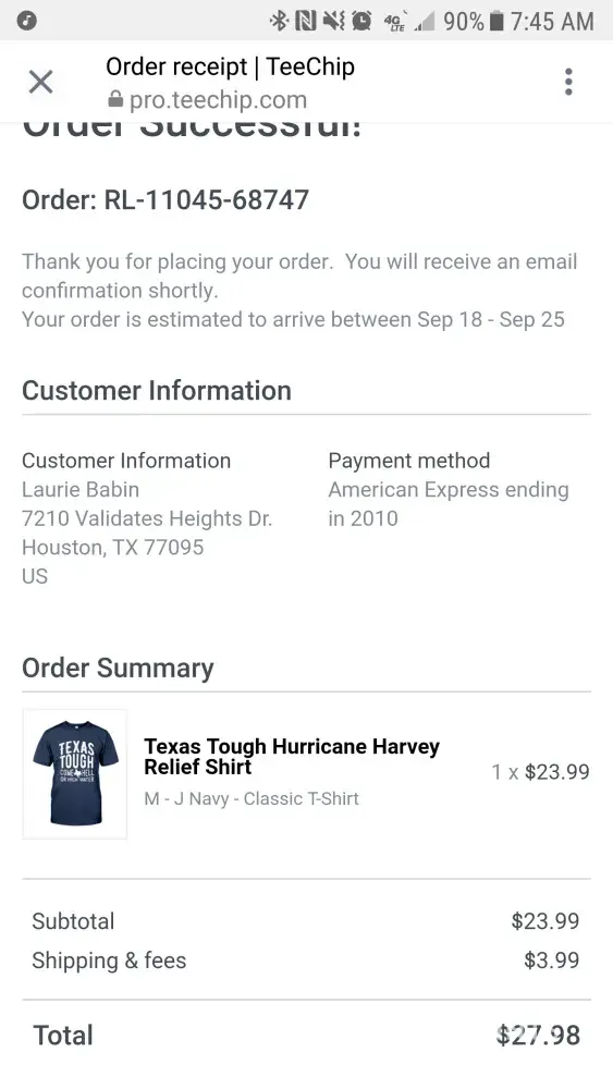 texas tough hurricane harvey relief shirt item ordered but not received