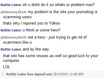 This is rich. I'm still laughing about it. So I met this "girl" on a website called FuBar.com and we talked for a day and everything seemed pretty cool. Then this conversation just came up tonight. I blocked my name out with MY SCREEN NAME to keep my anonoymity.