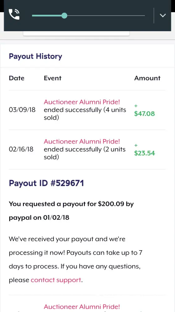 Our brand new alumni association wanted to get our first piece of apparel and had some success with the campaign. I see where the payout was done, but have not received it. I have been trying to reach someone about a $200 payout since january with no response. Even when I called the number listed.. It's automated and offered no support.