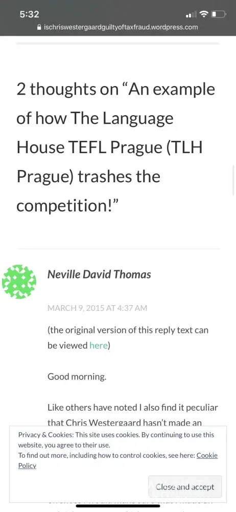 In this screenshot we see Neville David Thomas trashing his Czech competitor when he run ITTP TEFL.