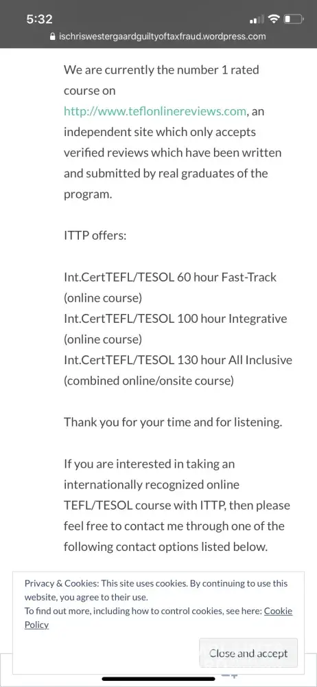 Instead of offering proof that these negative reviews were credible, Trusted TEFL Reviews decided to attack the other online courses, creating both a scam and blacklisted section. You can currently view this content on their website. Needless to stay, the information in these sections is false and Trusted TEFL Reviews refuses to make any counter argument from the online companies public — they are not allowing us to add comments on the site. When an impartial review site creates a scam section about your company for questioning the legitimacy of some reviews you've received, you know there is something up.