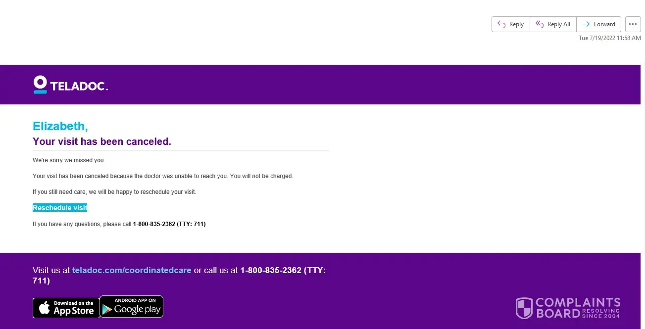 I have a confirmed appointment scheduled for 12 noon. At 11:58am I received an email indicating that the doctor (Dr. Scott Rennie) cancelled my appointment because he was not able to reach me even though he never even attempted to reach me AND it was 2 minutes before the appointment. How can I trust re-scheduling the appointment if this is the behavior I experience the very first time I attempt to use the service?