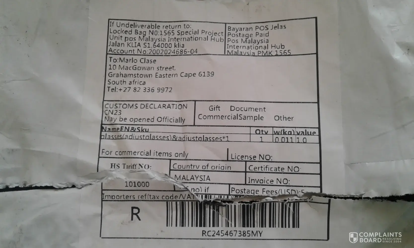 Parcel not received