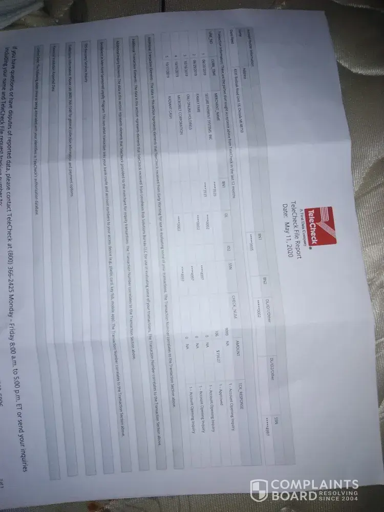 Wow, Telecheck looks like you need to resolve your issues, And why are businesses still using them? They should have been GONE a long time ago. Oh and by the way, this is what happens when people in another COUNTRY take your calls to fix what is going on in the USA, Think about that's how these folks take your info and use it to con you out of money, They send your info all over for these scam artist to use on you. My thing is why are our companies in the USA letting people in other countries take our info! Shame to all the companies in the USA for not hiring AMERICANS