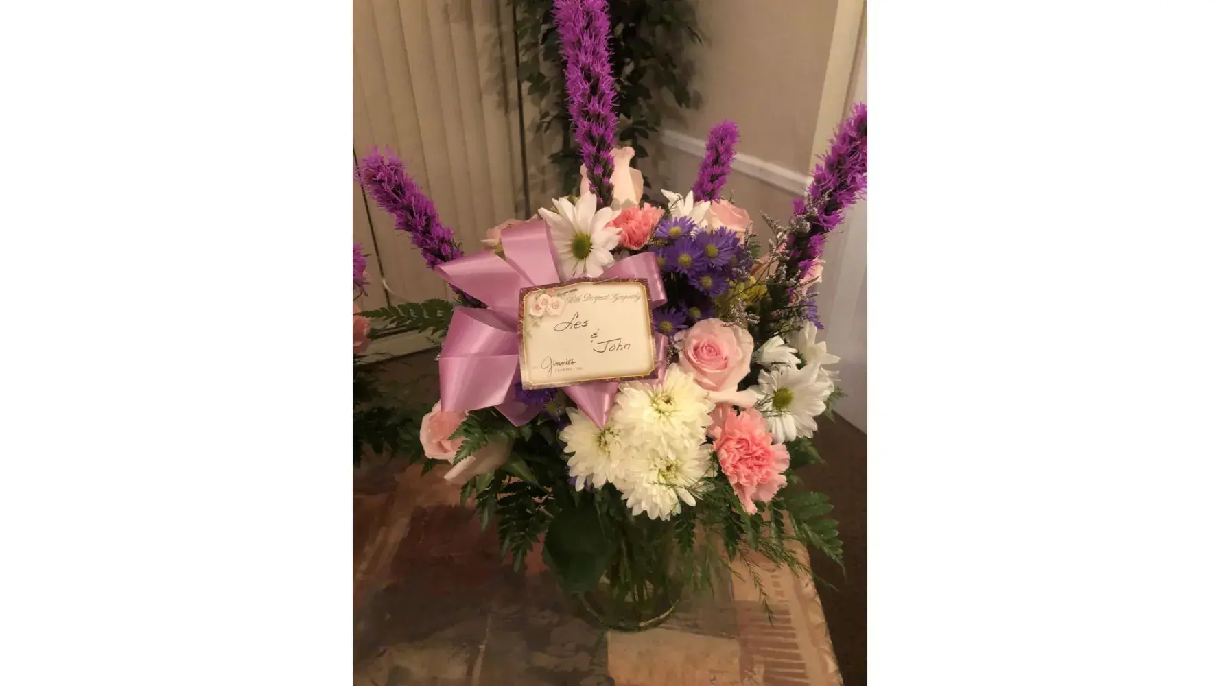 About 2 weeks ago, I sent a sympathy bouquet to a close friend GA upon the loss of her husband of many years. She was so pleased with that arrangement.