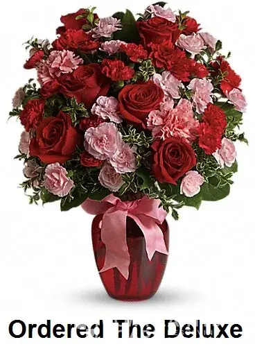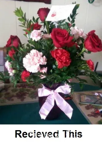 Ordered online from the Teleflora website The Deluxe Valentine's Day Flowers (photo 1 ) to send home and parents received (photo 2).