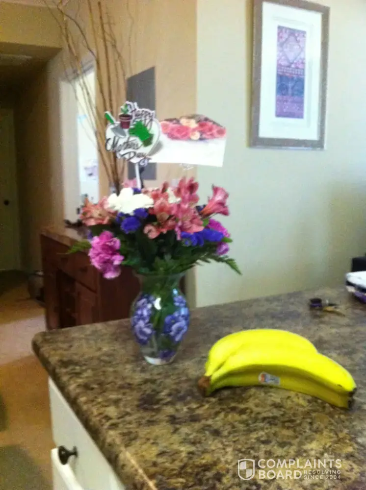 After 10 of my phone calls and several e mails, just because "some materials couldn't be found" " some vases can not be found" no one never called me at my phones, or send me an e mail stating so. The birthday ballon was not included and the cheapest vase was used. Not the vase I paid for. It was delivered May 25, Wed.