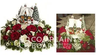 Pictured deluxe Thomas Kinkade Christmas arrangement not even close to what was delivered. I paid $78.00 for what is essentially $30.00 worth of product. Look at the picture of what was advertised vs. what I got. I think the photos say all.
