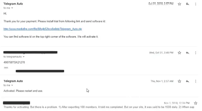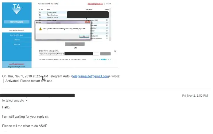 I did my research online and it appeared that telegram auto was only slow in resolving issues but never scammed users. Unfortunately that is not the case. I paid them in ETH and they activated my software. But that was all that I achieved. I tried extracting the users and that seemed to work ok while it was very very slow. But the real problem is that you...