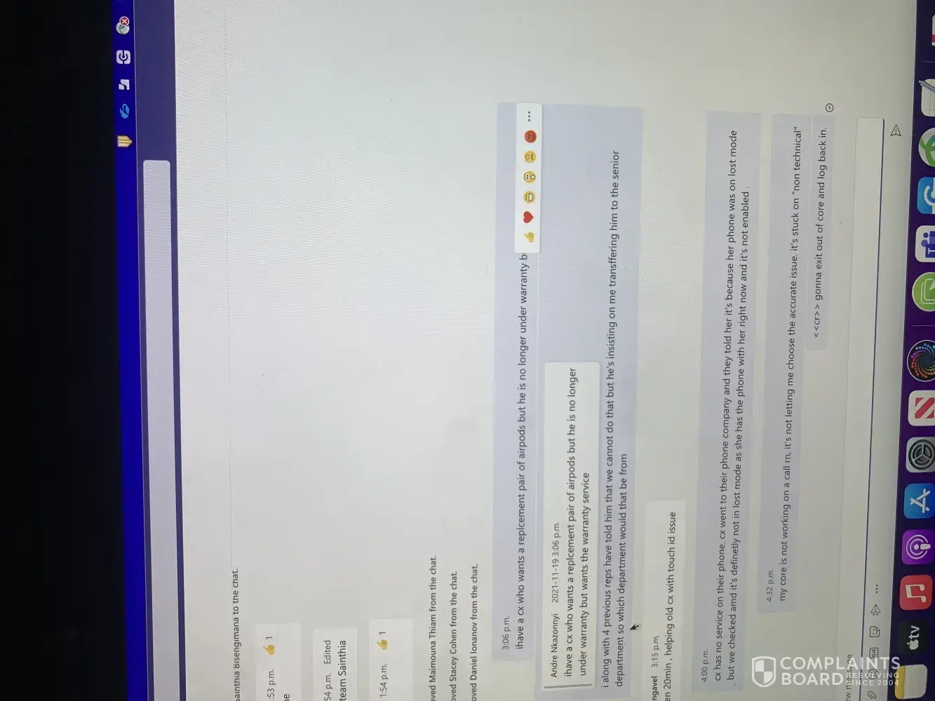 First reason would be my logging interactions, Yasmina states that I haven't logged my cases correctly when I have documented proof of me keeping up a 100% logging interaction on a weekly basis. She then did not provide the cases that have not been logged correctly. And secondly, she said that I had an Apple IQE fail for not assuring the customers, I make sure that for every single call that I receive, to assure the customer and make sure that they know I'd be happy to help them. Once again Yasmina has not shown me any recordings of calls in which I have not assured a customer. I believe that she has terminated me because I have previously filed a complaint about her. If a teleper Repress could review this and get back to me as soon as possible that would be greatly appreciated