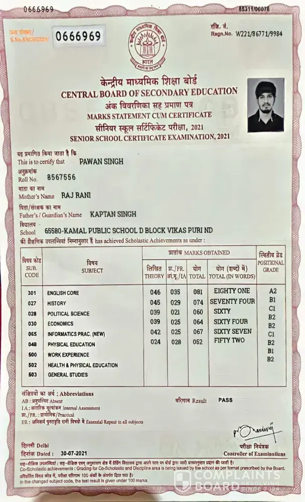 In this current week at your india office which is located at gurugram they hire a person (Pawan Singh) he is actually 10th failed and submitted his fake 12 mark sheet and your company hire him without any verification that is a criminal offence so as per my request you have to fired him or launch a FIR against him I am sharing his fake mark sheet with you can check whether its fake or original.