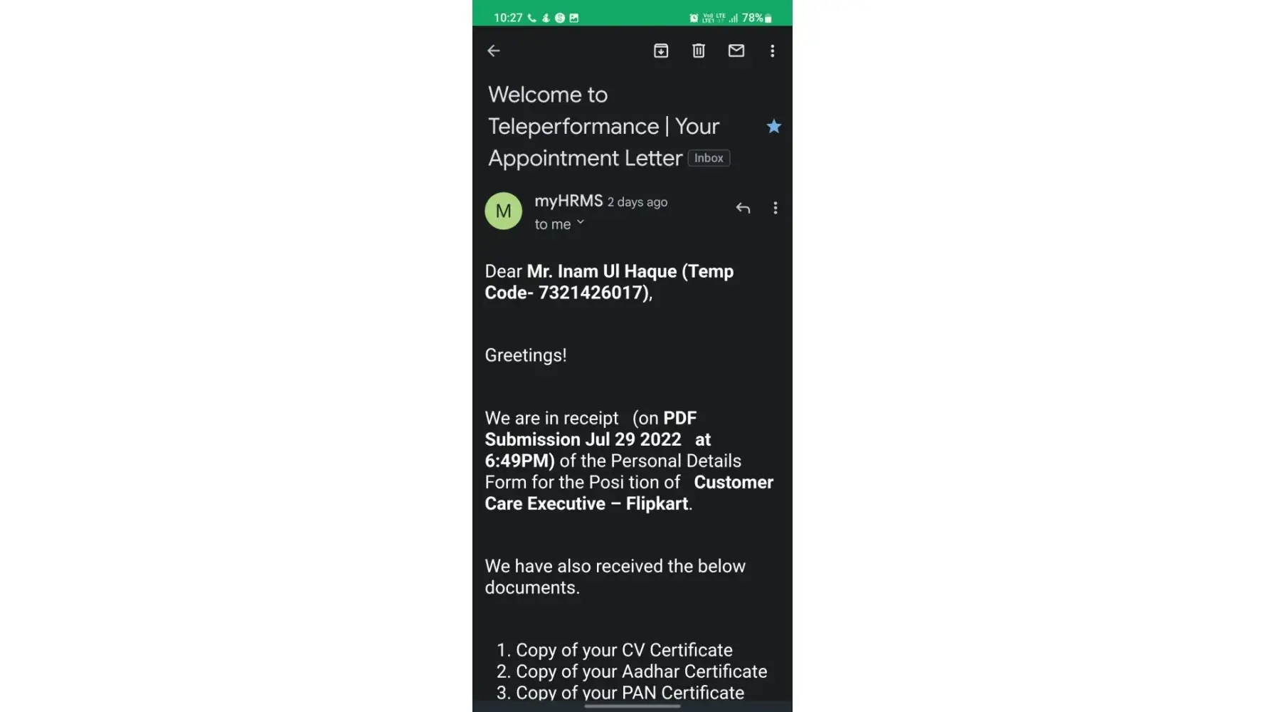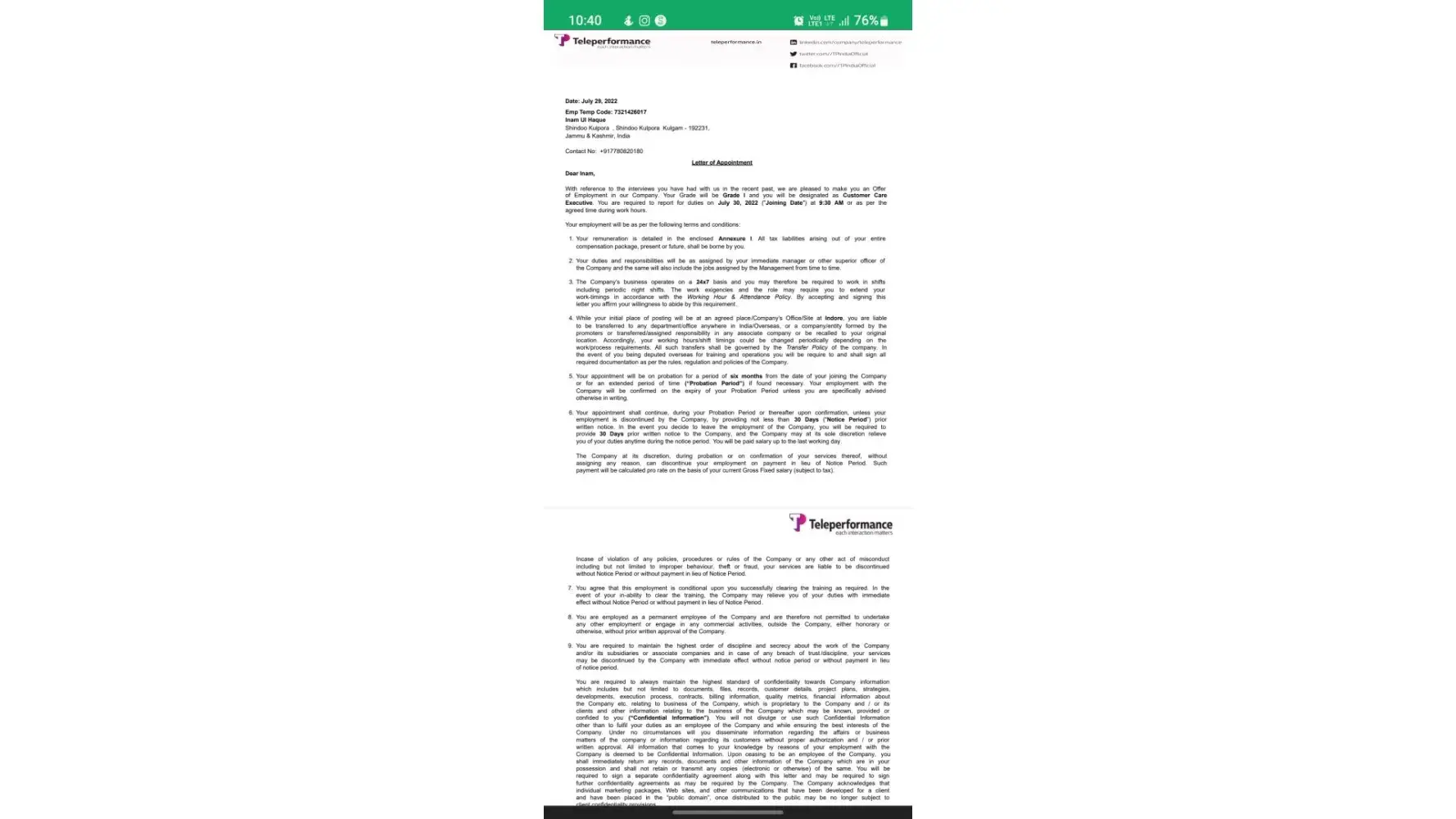 recruitment fruad by teleperformance with me (INAM UL HAQUE)