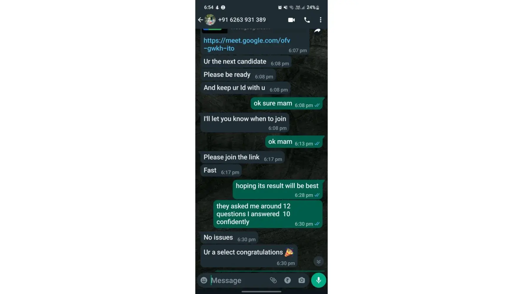 Desired outcome: I have proof when I joined Google meet after the end of interview I recieved the msg that you are slected congratulations how thay let me do all process such as system Check, on boarding, appointment letter and acceptance of offer letter.