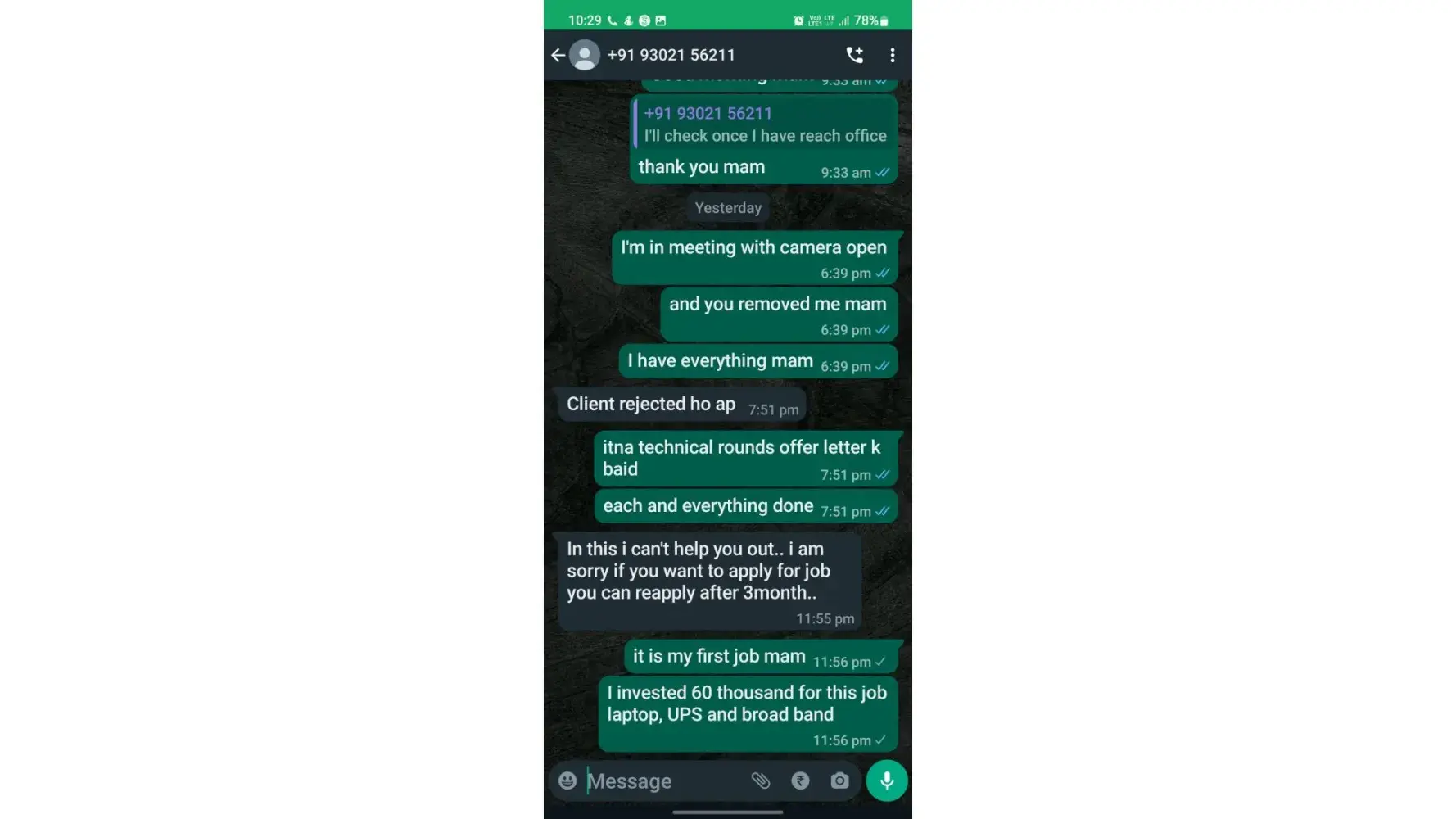which state that I was slected for the job I have got appointment as well as offer letter and even got on boarding email but yesterday the trainer removed me from group saying that I was not slected in the interview.