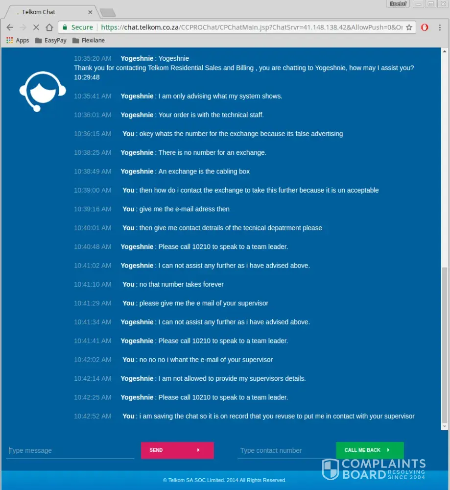 I feel I must take this further. Consumer protection does not seem to matter to Telkom.