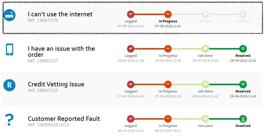 I have logged several faults with the business call centre. They told me a week ago that the line was restored and working, which it was for about 5 hours on saturday.