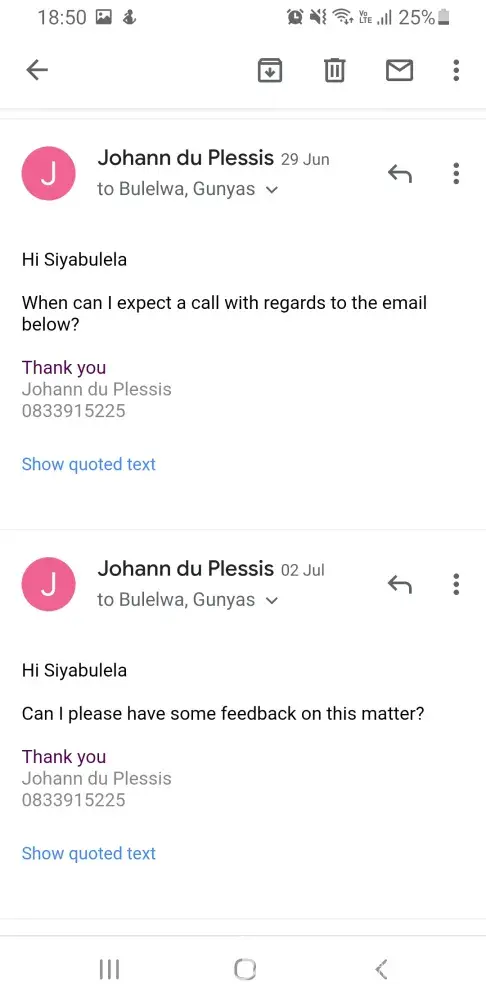 I want this to be sorted attended to promptly, because whether I am a client of yours or was a client of yours, you should provide good service.