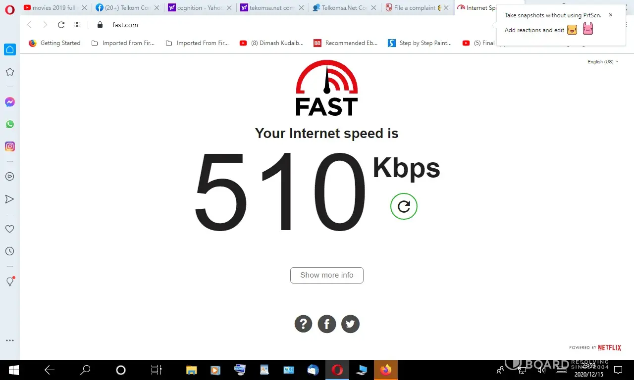 Telkom SA SOC Internet slow speed on dsl moves between 620 kilo bits per second in stead of between 2 and 10 megabits per second
