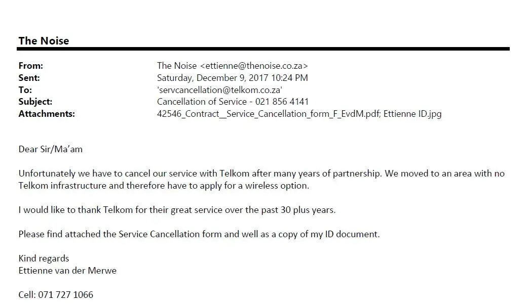 I received the below email from Telkom and I contacted Telkom a lot during this week. The answer I get is that they cant help me and I must forward the email to them. The problem is that I have a Telkom contract that expires in 8 months and all the services as per their email is included in the contract details.