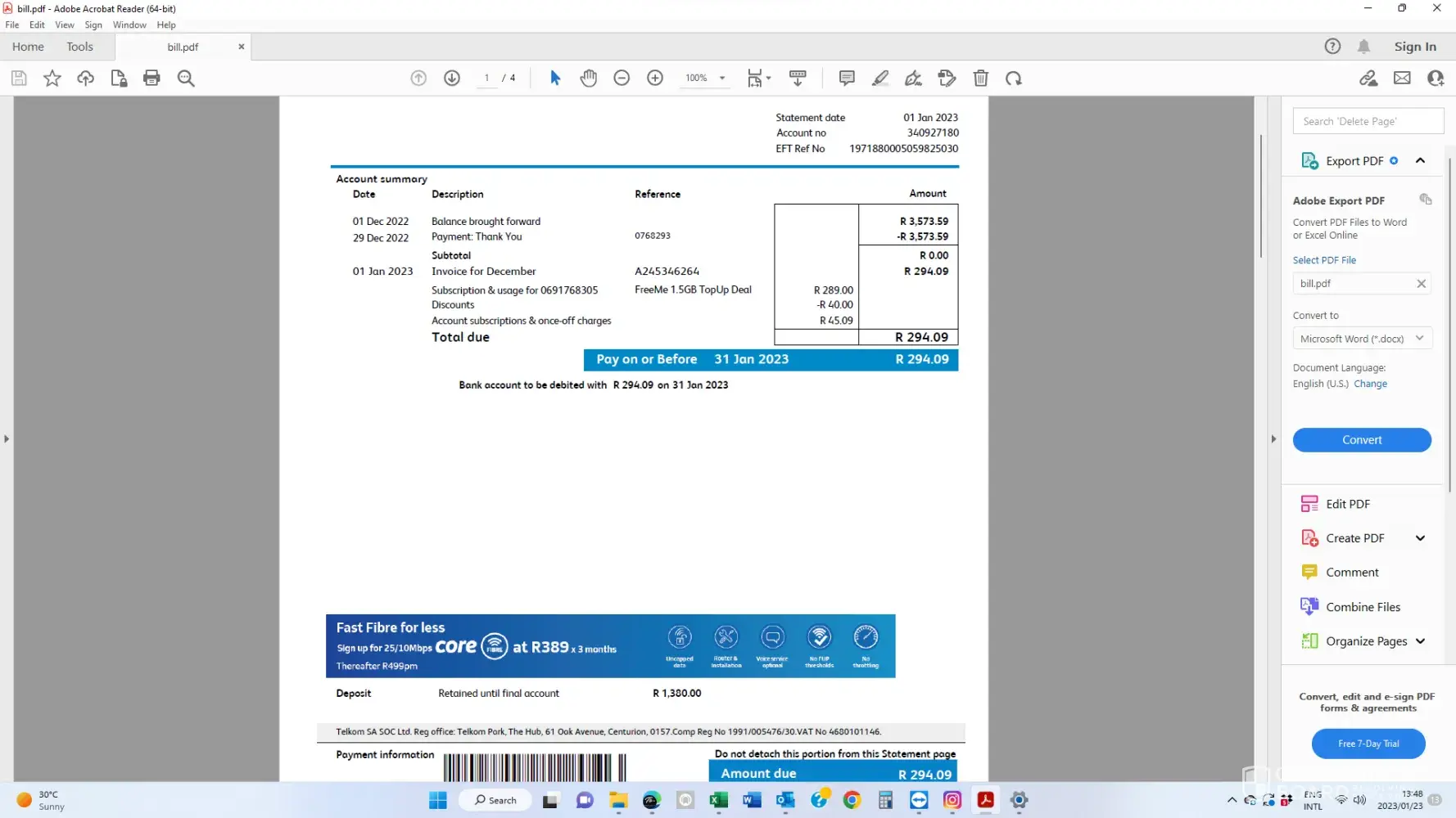 I trust you are well. I would like to start by saying I am very disappointed with TELKOM. Description Period