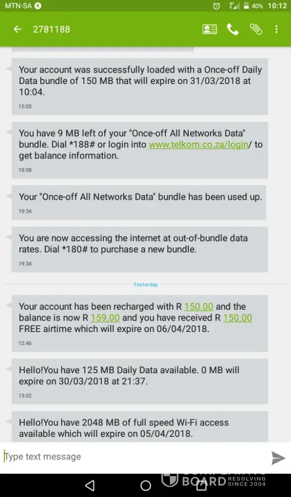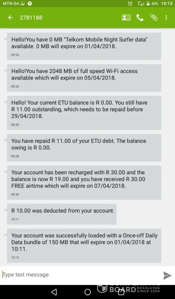 I loaded R 150 airtime on the 30/03/2018 with R 10 emergency and bought a 5gig data bundle on the monice (*123#) I received the bundle did some browsing and next morning it was gone no sign of data and no sign of free airtime also! I contacted Telkom via 180 and spoke to bongo at first and the agent told me it could be a technical fault and that she will get back to me at 10:00 am (31/03/2018) I waited for a hour and a half and after no respond I contacted Telkom again then spoke to gagathtl another Telkom agent and after no help I requested the branch manager, I spoke to Mrs Venter and she said that she will investigate the matter and follow up with technicians and will resolve my matter not later than that day she also requested screen shots of me loading airtime and monice and asked me to email it and I did ([protected]@telkom.co.za) still till now I have not seen any data retrieved back to my sim and had to use more money that I didn't budget for, for more data. I think the service of Telkom towards met was very very poor ! I have nothing good to say about Telkom anymore and I'm not a happy customer at all! For I had previous faults also before I would like my data and airtime back as well as an apology complementary package towards me for money waste and time and inconvenience caused! pls any Telkom agent or managers help will be appreciated if there is actually still hard working problem solving Telkom staff left or an CEO so I can tell him of the poor service! I have photos and thinking of taking further steps