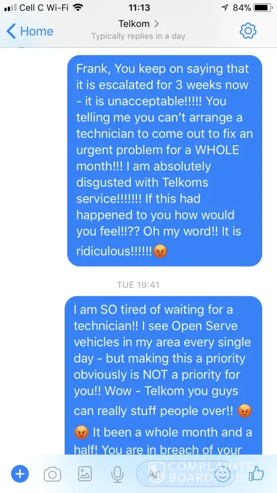It would have been very satisfying if Telkom as a whole actually took the time to empower their staff (especially management) in a way that they can solve problems and deliver a great customer experience, and not find the easy way out to blame customers for what seems to be very technical for them to explain or understand and leave us as customers unsure about what is going to happen next and more frustrated.