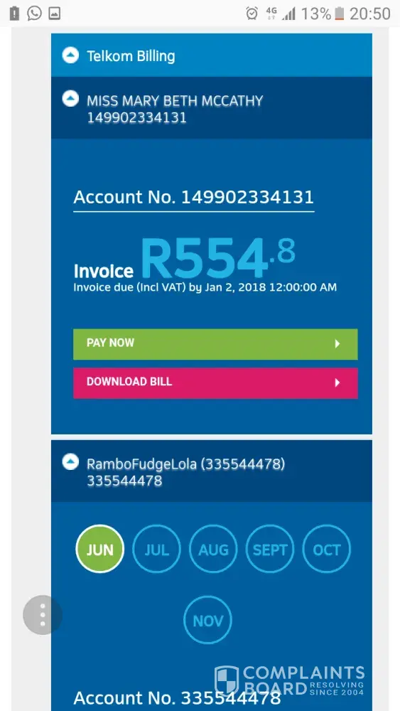 I will be submitting a formal complaint to the Nation Consumer Commission and the respective regulatory bodies as this is not the first time I have had a difficult problem with Telkom and their service.