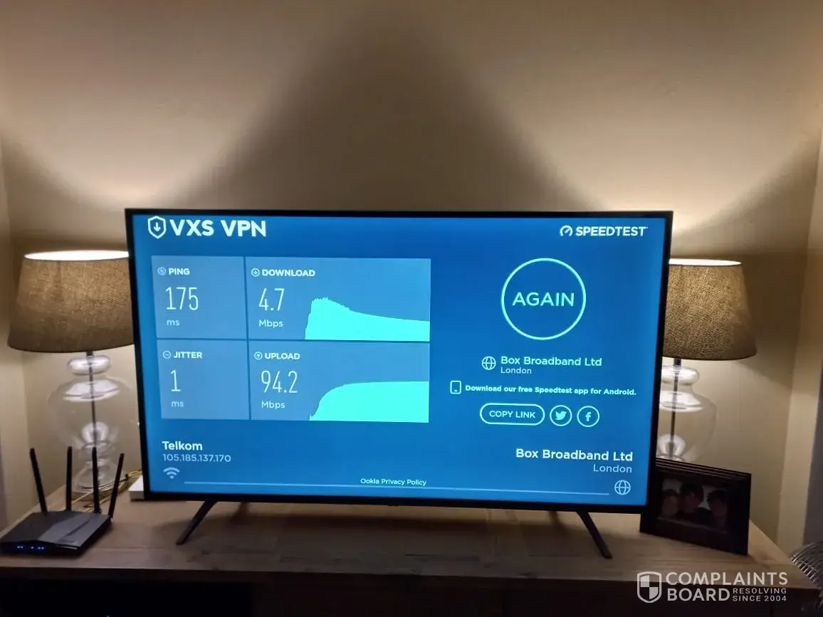 I have logged numerous tickets and am still struggling in the evening with my service being throttled. I upgraded to a 200/200 package after being told that it will work and I wont have buffering! The service is fine during the day but gets throttled right down to 2.4 download in the evening from 18.00.I use a media box to stream international TV and know that Telkom is throttling my service, I've done OOKLA tests via New York and London servers - attached is proof of the speedtest done.