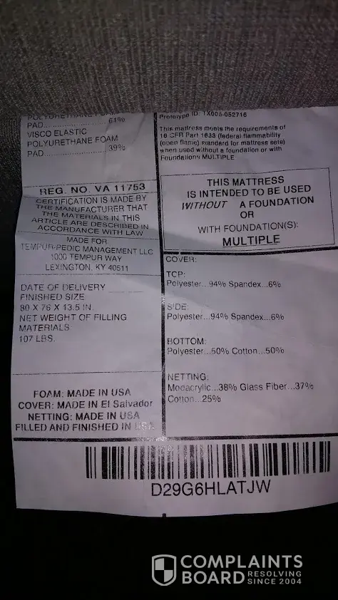 Additionally, she would not offer any options to settle this matter amicably. I tried explaining that defective products are outside the bounds of a warranty, and if necessary, the federal trade commission can order a national recall. With this particular mattress, I believe such action is warranted.