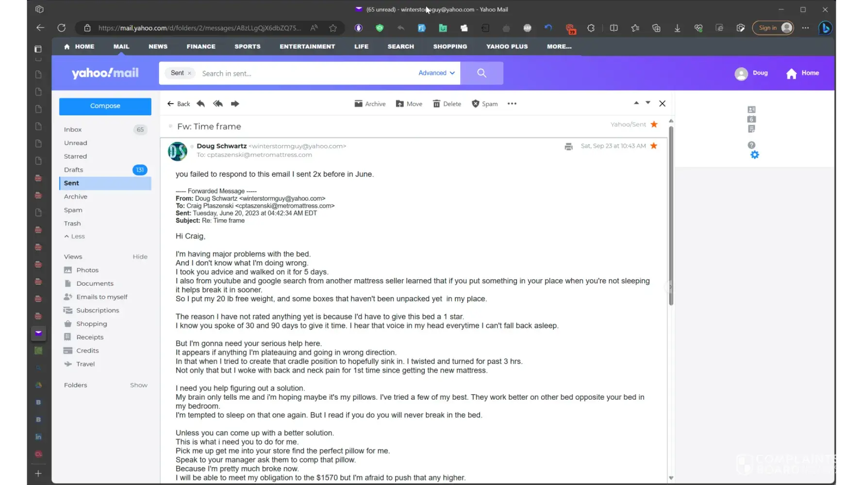 Desired outcome: Replace my mattress. Make this right.