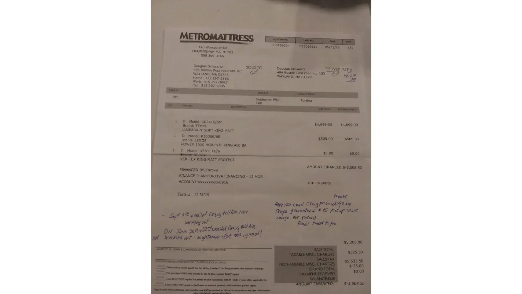 I never spent over $900 before this mattress. I still owe $826 to the credit card company Festiva who unlike MM said no charges of any kind if paid with in 12 mos. Slapped me with a $49 annual fee. Not disclosed.