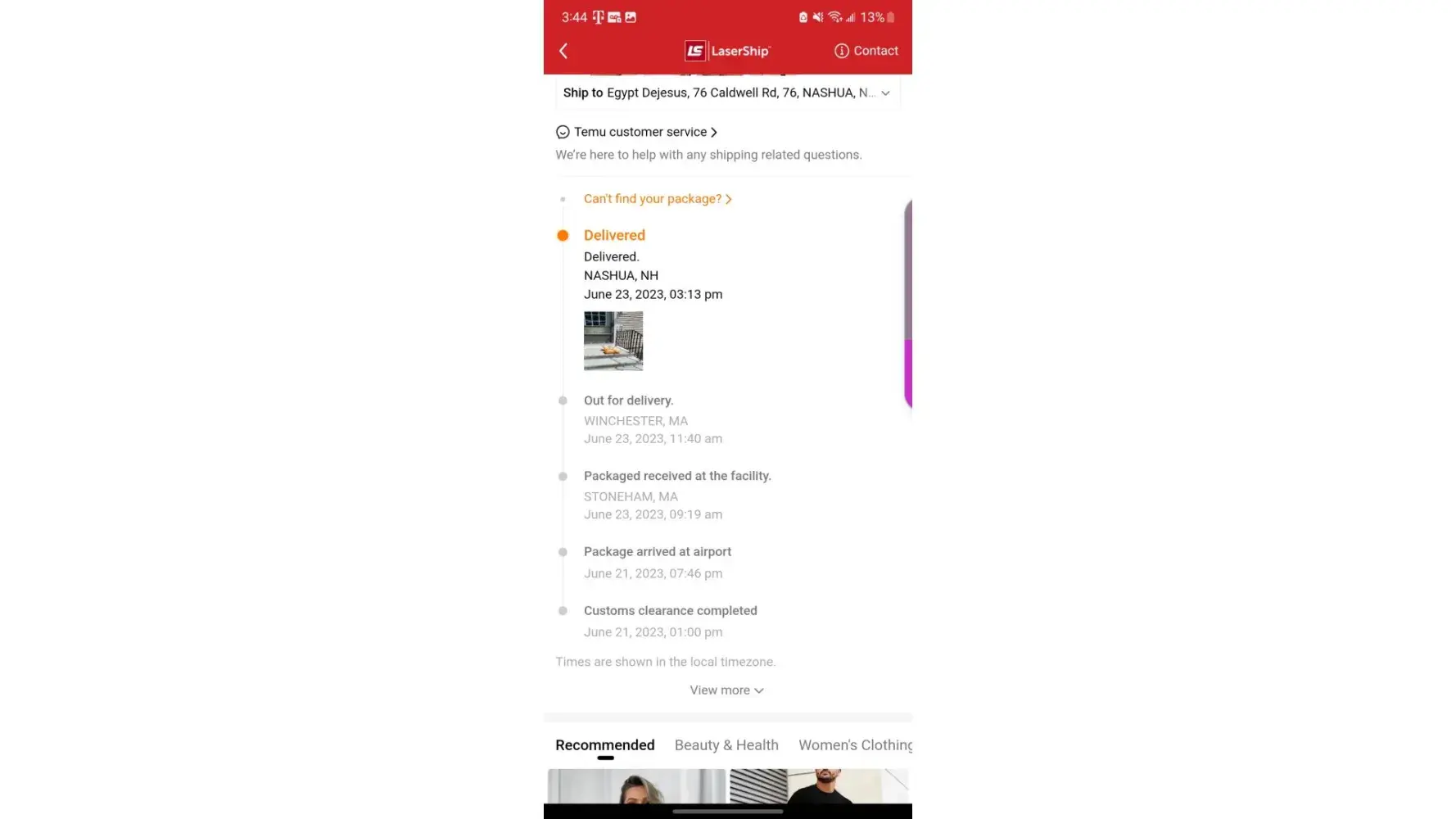 My name is Egypt Dejesus and I ordered several items from Temu and they say that you delivered them but I never received them. They sent me a picture showing that my package was delivered but the image wasn't my home. My address is 8 forge Dr but they delivered to 76 Caldwell st. If I don't get my packages I will pursue other means of complaints.