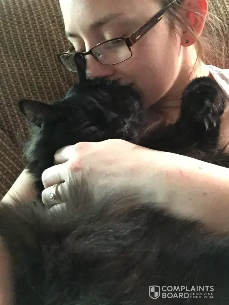 I took Glam home and it immediately turned into a disaster. My vet confirmed he had a UTI and crystals in his urine. A licensed vet confirmed he was not sold to me in good health. Glam would hiss and try to bite me. I couldn't get within five feet of him. And since he was unaltered, he was spraying EVERYTHING. Liz assured me he wouldn't spray but be did. I was new to male cats so I didn't realize how bad it could be. I tried for weeks to get him used to me, nothing was working. He was a very aggressive cat.