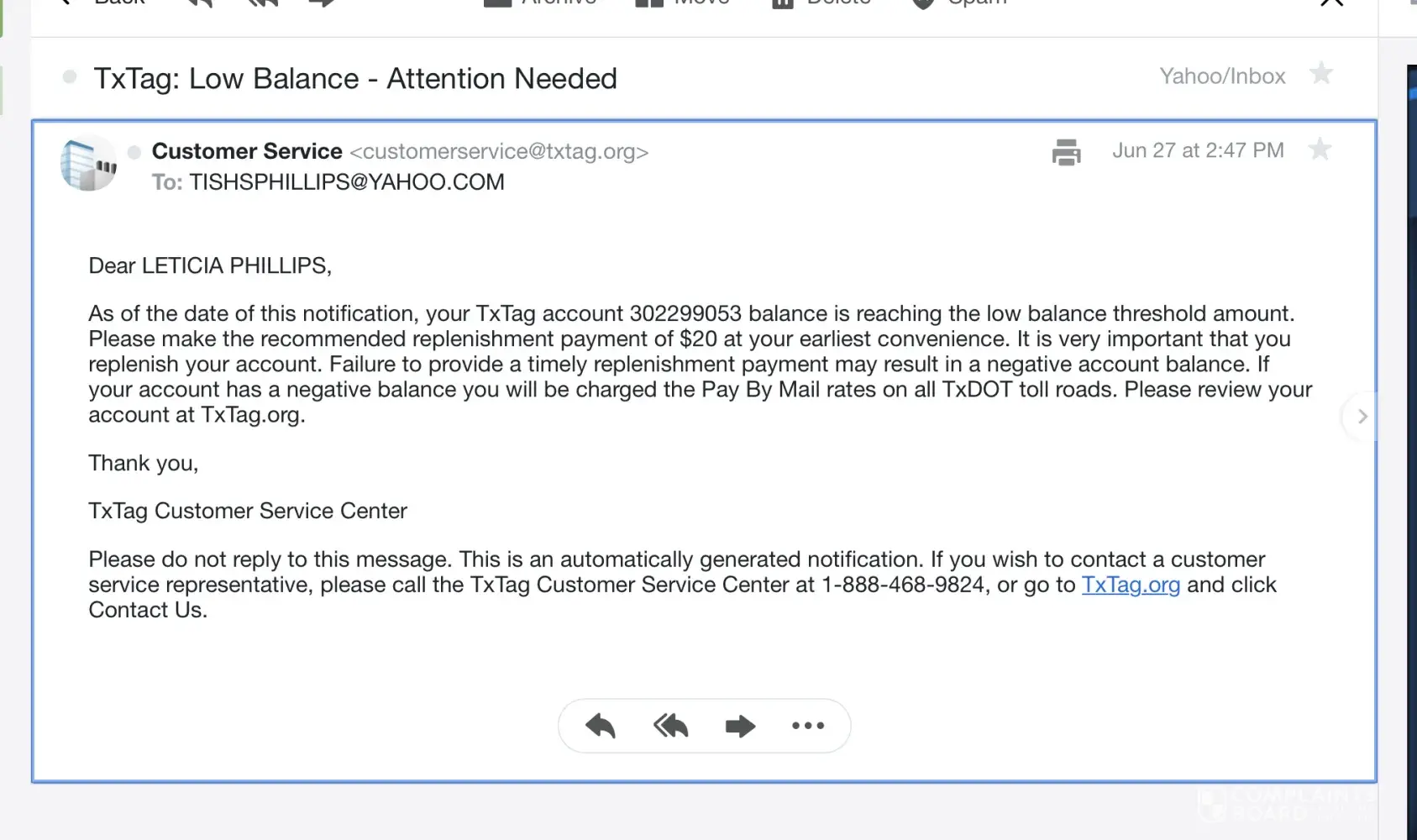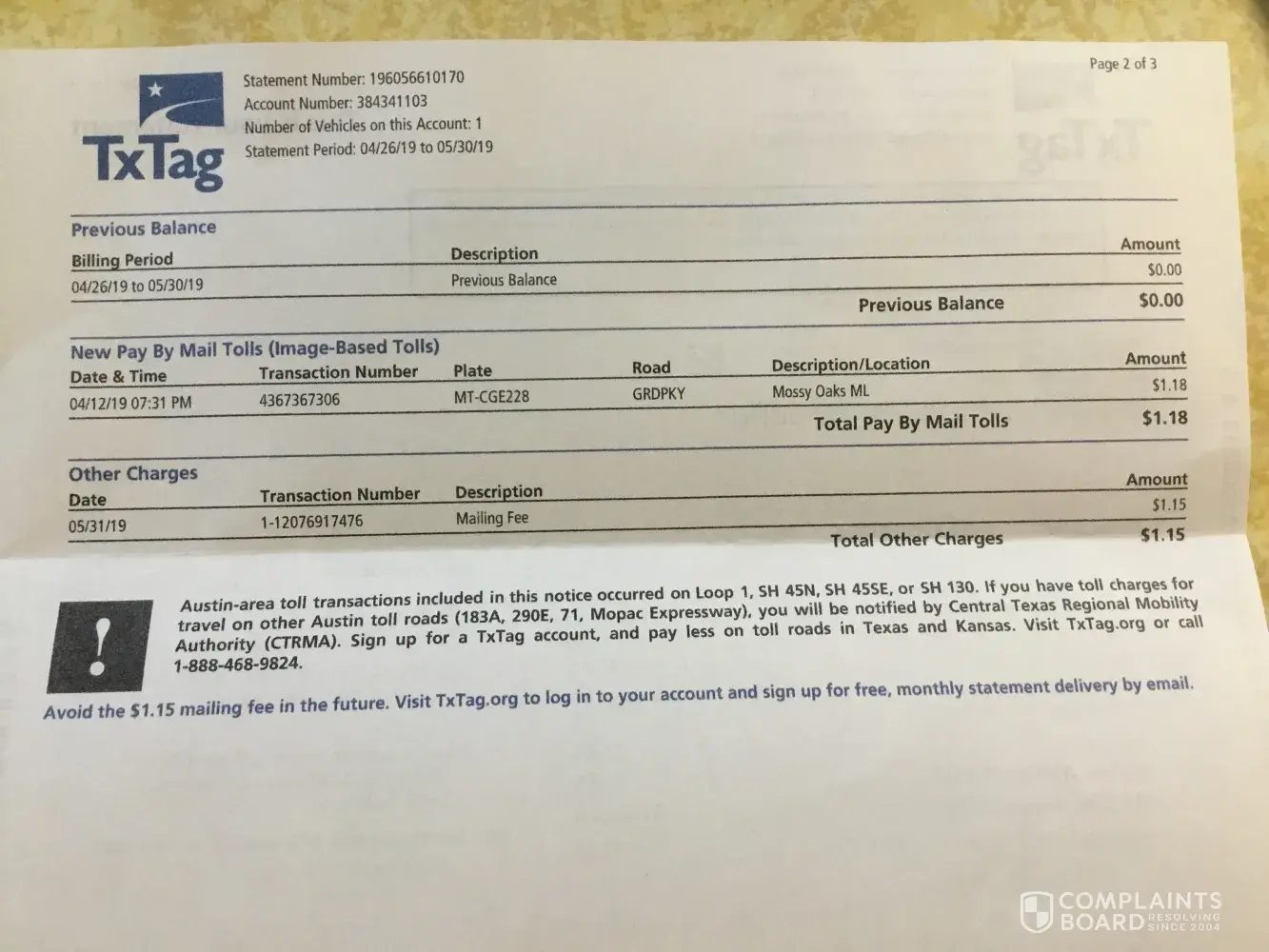 Texas Department of Transportation / TxTag.org Complaints Page 5 of 7