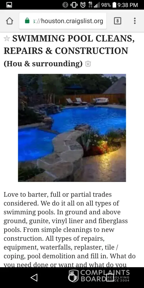 Lisa..he uses the same pictures if the supposed pools.. I have screened shot some his adds...if you can do something thru Craigslist that would be good!