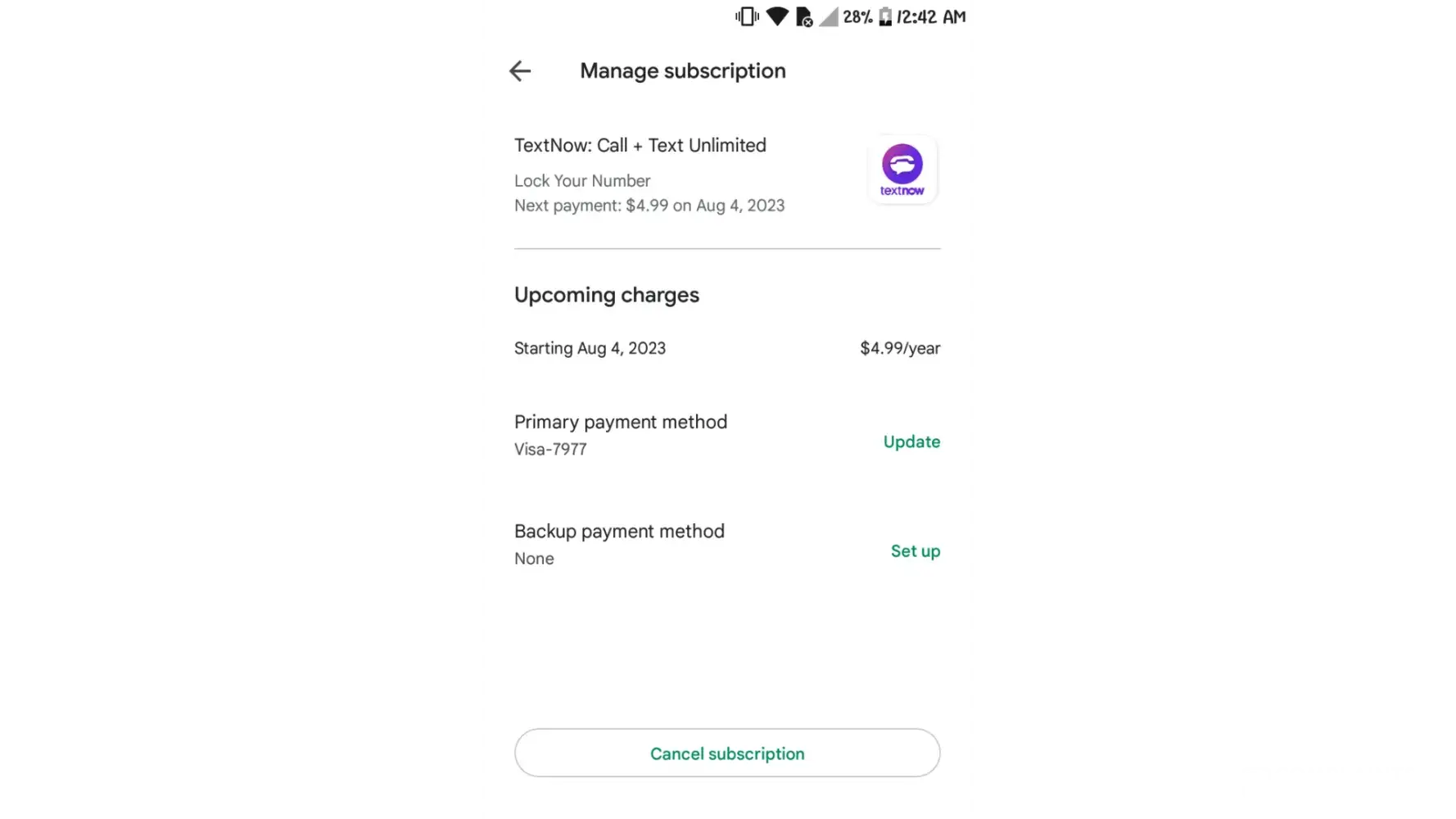 Issue is working with support. They either don't know or don't want to help based on company policy - feeling is screw you we got your money. I had a number, paid the Premium service. Then TextNow cancelled the number and/or access to the account. So I created a new number and I am trying to get the initial premium service applied to my new number. TextNow states that they can't do this. So I went to Google Play. Google Play does not allow allow me to cancel. TextNow said they can't flick the switch and apply premium to my new number even though they know I have paid the $29.99 for the yearly services. I see no next step except to complain about how bad TextNow is as a service provider. Google won't cancel and refund. TextNow states it has to be done by Google. I am in a no win situation. Typical TextNow response. Can't believe this service is still in business as they do not meet minimum requirements to provide customer service.