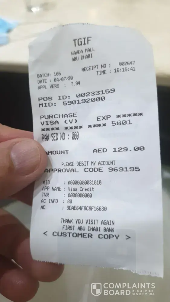 I'm a regular customer on TGI Fridays in Al Wahda Mall branch in Hazza Bin Zayed Abu Dhabi. Every time I visit the restaurant I ordered the same food, but today when I ordered the same menu I chose 80% of the meat was bone and I paid 129 AED for nothing. What kind of customer service is this? I'm a regular customer and spending money for expensive food but the service of meat was very disappointing.