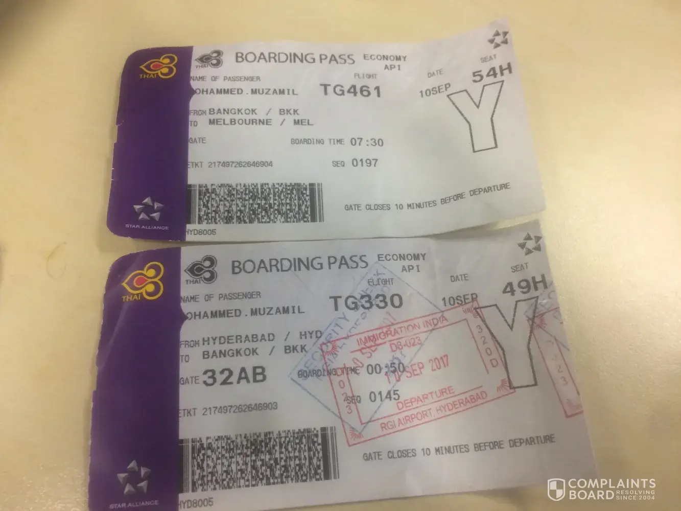 I have traveled with Thai airlines on 18/12/2017 from Melbourne to Hyderabad (ie Melbourne to Bangkok - Bangkok to Hyderabad).