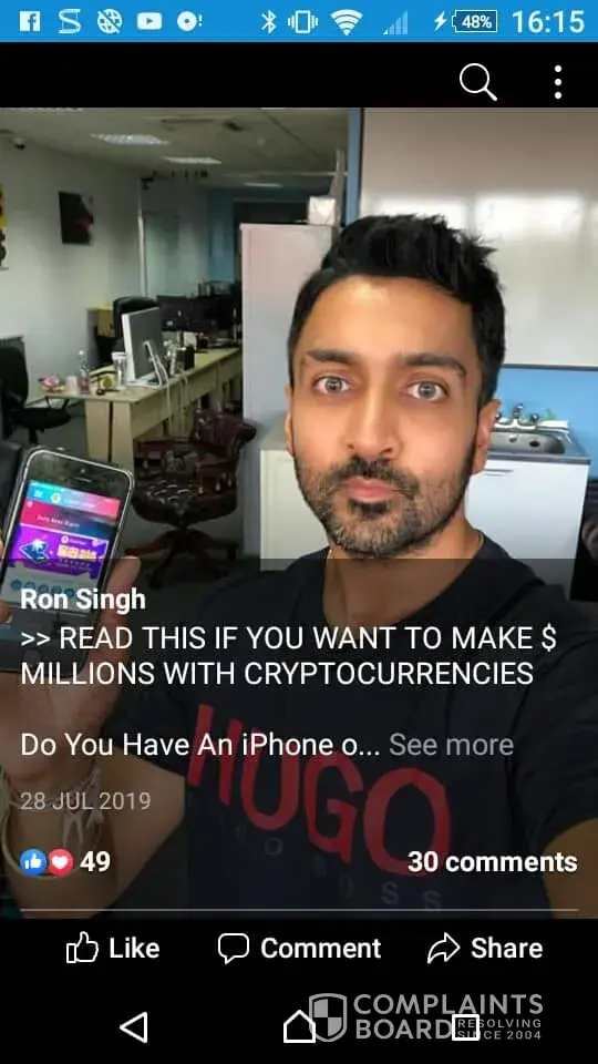 Ron Singh 'Dot Com Kid' who operates cryptonaire.co is a notorious scam artist who promotes cryptocurrency ponzi schemes on Youtube, Facebook and other major social media platforms. He is stealing a large sums of money from thousands of uninitiated investors with crypto “super wallet†scams since November 2015. He peddled countless scams such as Qubit.life (formally known as Qubittech), BNBProfit, EmpiresX and Hyperfund Global. He has now deleted the videos of him promoting all of the previous ponzi schemes. Stay away from this very dangerous scammer who has no remorse whatsoever in defrauding literally hundred thousands of dollars for a living.