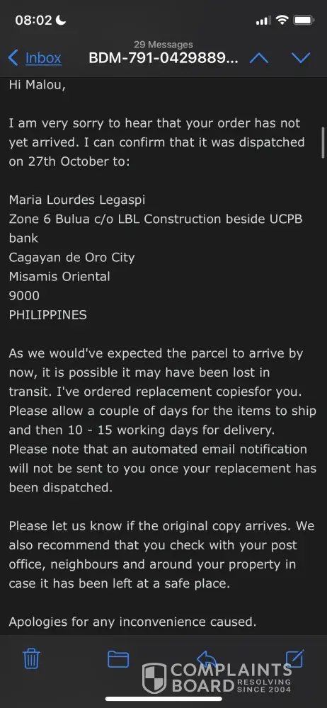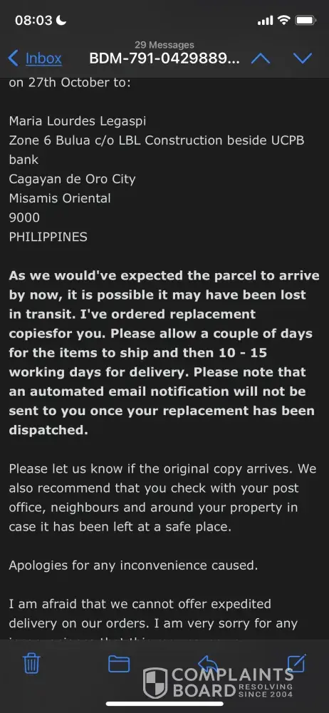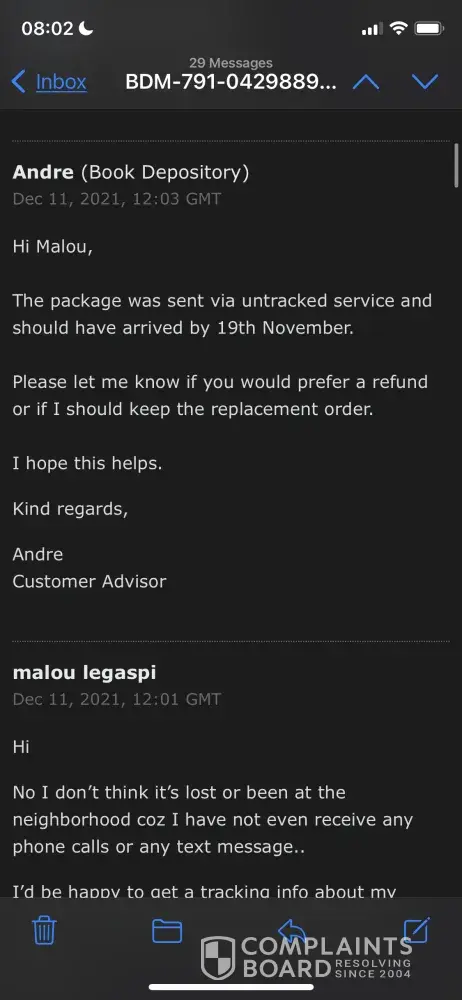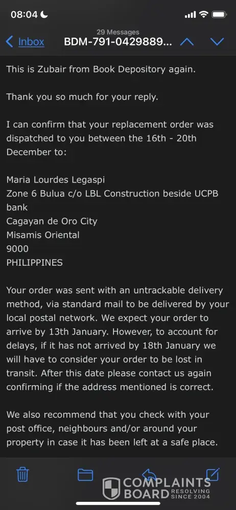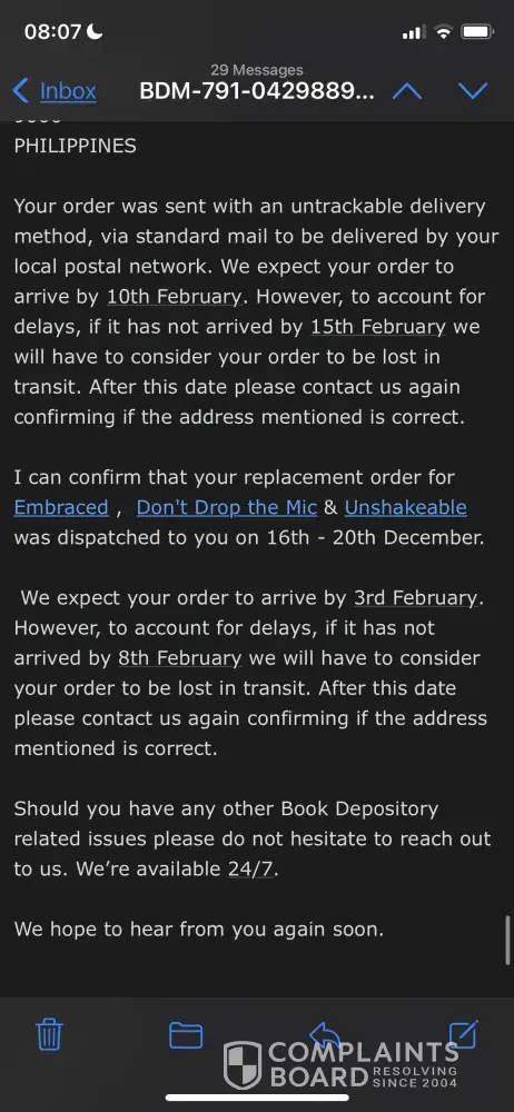 The Book Depository Order of 7 books unfulfilled and not refunded