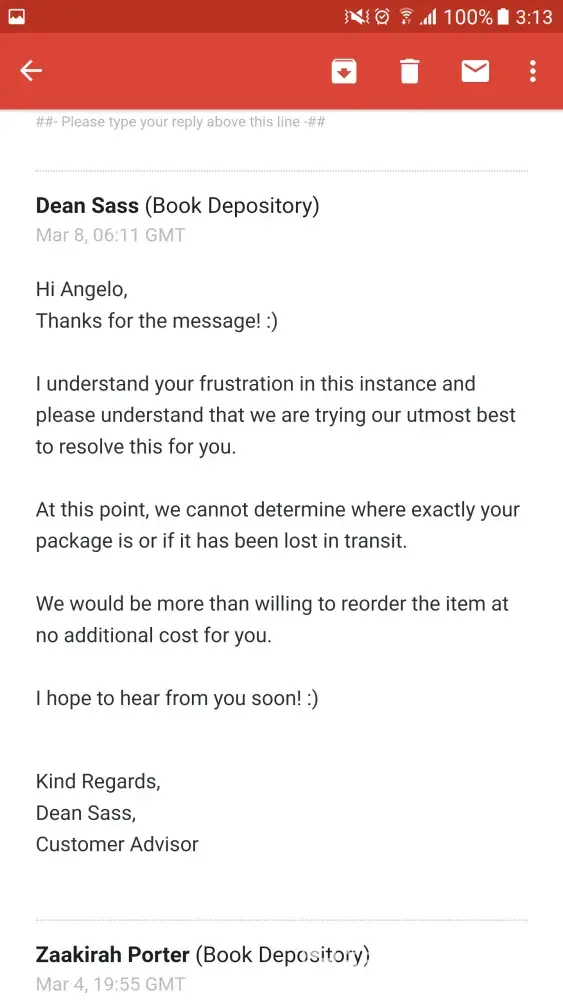 the book depository refuse to refund - rude and unprofessional behavior on email