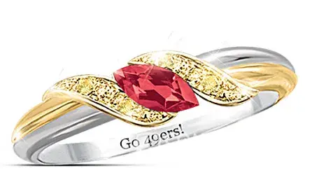 Rest assured your comments have been forwarded on to the appropriate department for further consideration. We apologize for any concerns you may have and we will do our best to address these issues in the future. Unfortunately the color of the stone for the san francisco 49ers embrace ring is more on the pink side rather than ruby red which you expected and we are not able to change this.
