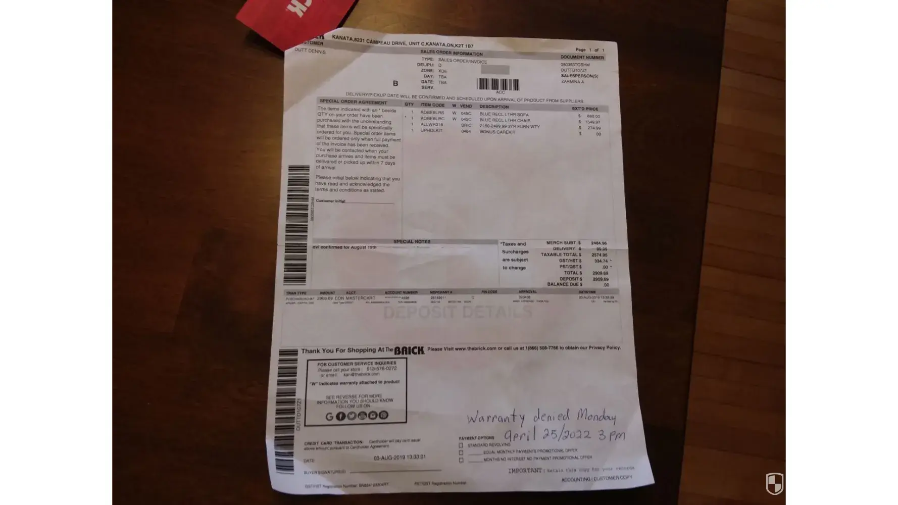Not the worst of it, it is now April 2022.. I had put in a claim for the table, chairs and dishwasher in March - dishwasher does not work at all, table and chairs are falling apart! I contact the store I purchased the items from - they will not honour the extended warrantee! They are saying I did not purchase it! However, if you look at my invoice it clearly shows that I paid for warrantee for all items purchased on that date!