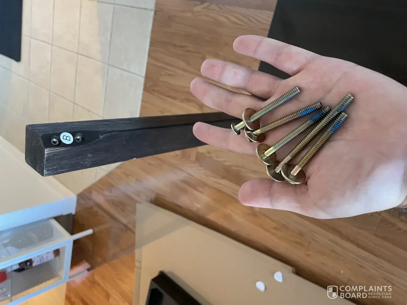 I bought a table, when I was assembling it, I found that it has a broken side - where you install one of the legs to the surface and instead or providing 8 screws to join the surface to the 4 legs I only got 5 screws (1 of the is not the right one - longer then the other 4 screws).