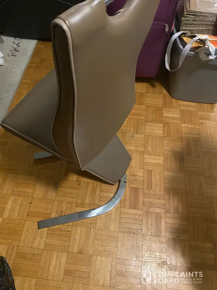 I purchased this chair (invoice #0919139LLjKB) on September 19, 2021. It was delivered on October 3, 2021. When trying to put it together I found that there were 4 bolts required to install the back of the chair missing. I went to the Brick Lasalle store a couple of days later to see about the bolts. They gave me 4 bolts that were the wrong size. I had to...