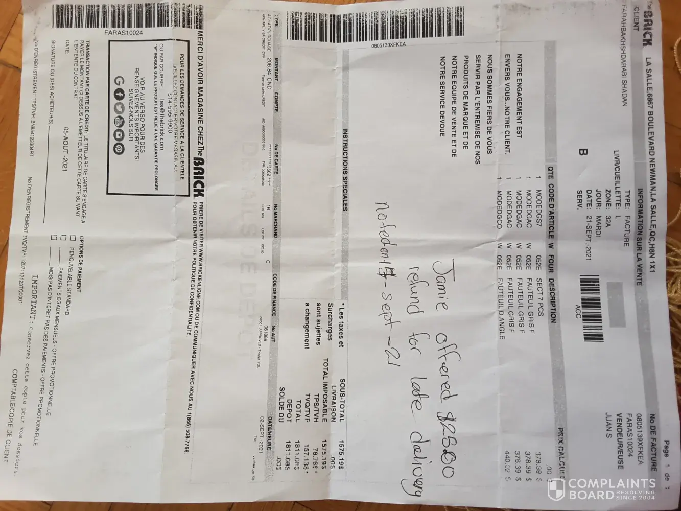The Brick has left an official reply on this complaint.