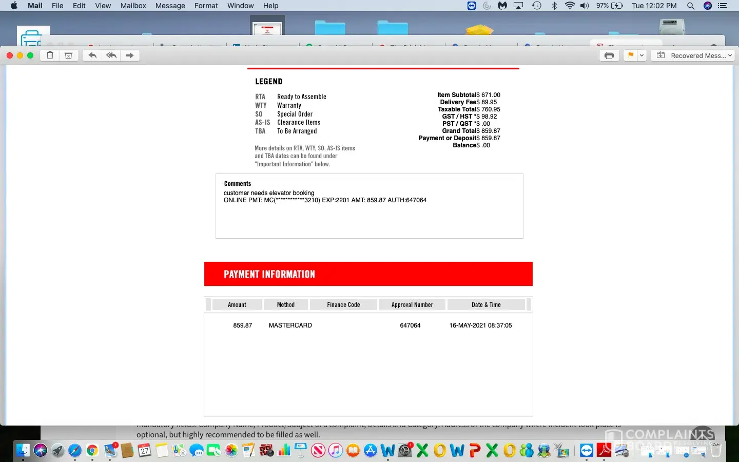Here following the email sent on 25th July 2021 to review@thebrick.com